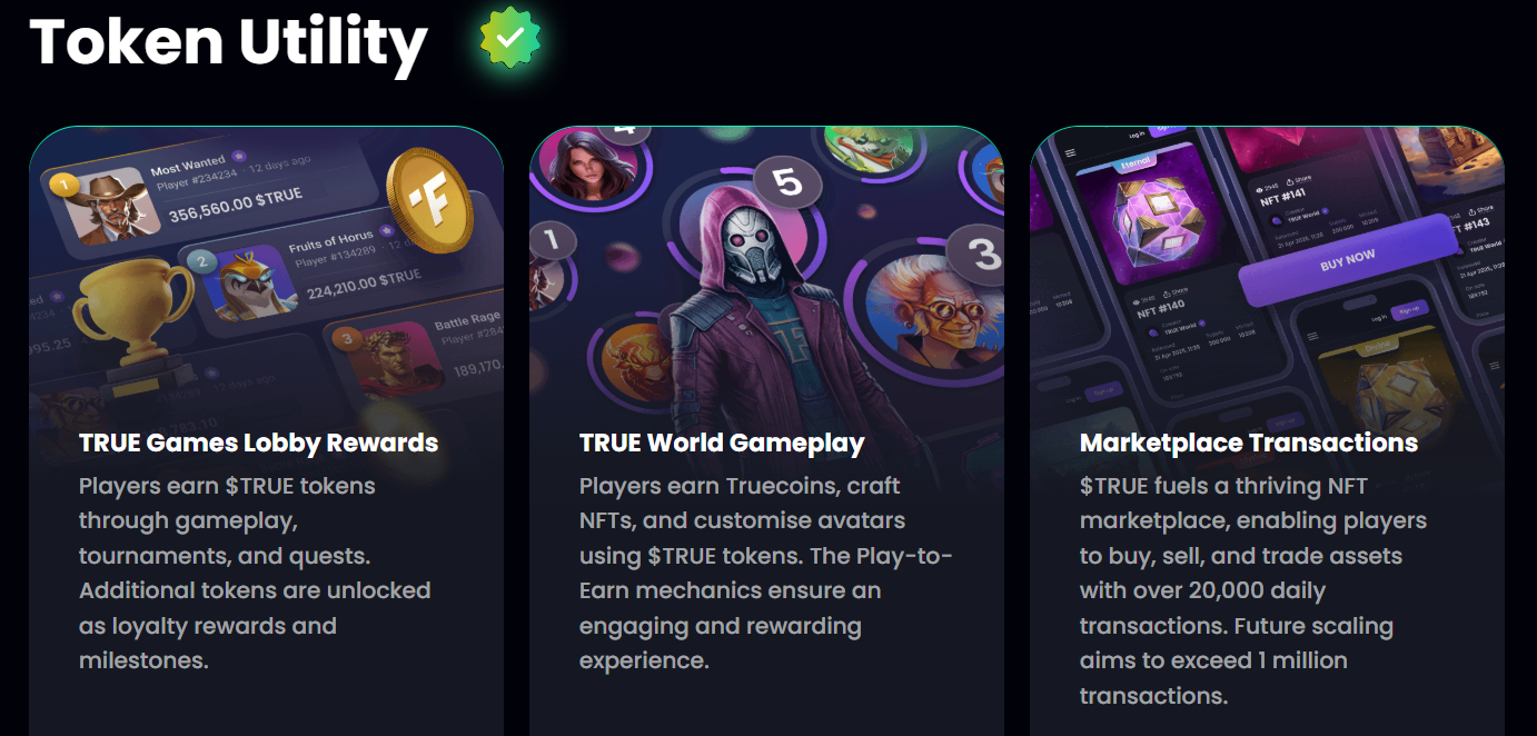 Unlike most “metaverse” projects that exist only on whitepapers, TRUE World is already live, integrated into TRUE LABS’ games. The $TRUE token will serve as the backbone of this interconnected ecosystem, linking in-game progress, collectibles, and real-world rewards.