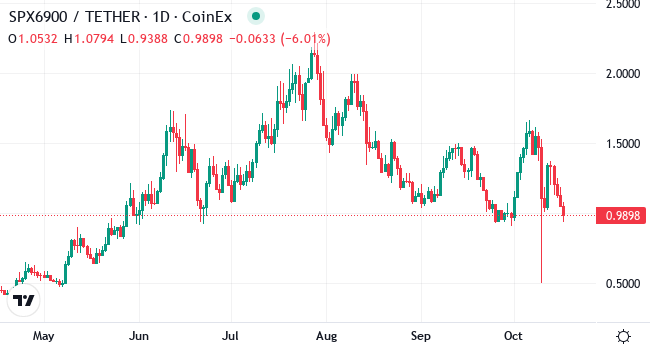 SPX6900 (SPX) is currently trading between sixty-eight cents and one dollar eighty-four cents. The price is hovering around the ten-day simple moving average of a dollar. There's room for growth with a nearby resistance level at two dollars thirty-four cents. This suggests a possible increase of around twenty-seven percent if it breaks through. If momentum continues, it might even reach the second resistance at three dollars fifty-one cents, marking an impressive gain of about ninety-one percent from current levels. Keep an eye on trends, as the nearest support sits near half a cent, which reflects significant volatility.