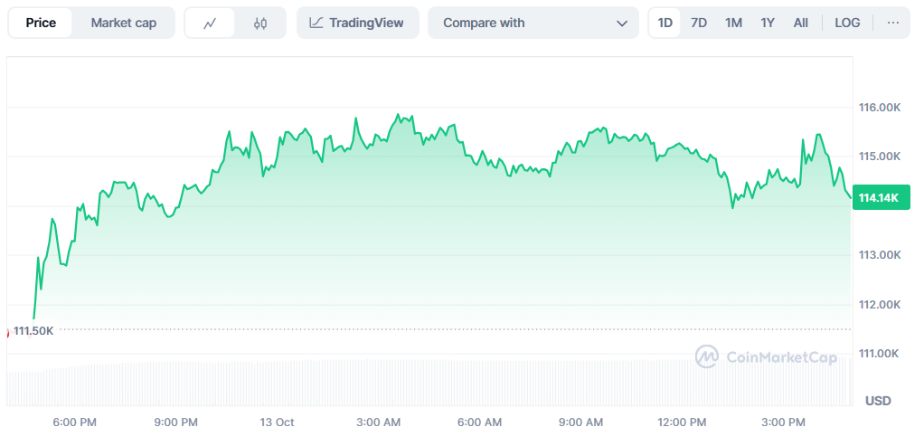 From a technical perspective, Bitcoin’s rebound has been constructive, though not yet decisive. The price bounced off the $105,000 support — a key psychological and structural floor — and is now testing the 38.2% Fibonacci retracement level at $114,600. The 14-day RSI climbed to 47.34, signaling a recovery from oversold conditions and a return to neutral momentum.