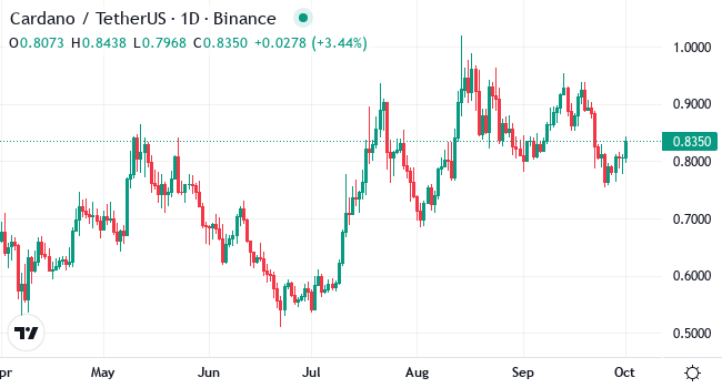 Cardano (ADA) is currently trading between $0.75 and $0.88. It has shown a steady increase, gaining over 28% in the past six months. The nearest resistance is at $0.95, while support is at $0.69. Should it break the resistance, ADA could climb to the next level of $1.08, marking a potential rise of around 22% from its current high. The 10-day moving average slightly surpasses the 100-day, suggesting ongoing upward momentum. With an RSI of 64.08, it indicates the asset is nearing the upper edge of neutral ground, hinting that the bullish trend might continue if market conditions remain favorable.