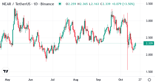 NEAR Protocol is showing a current price range between $1.99 and $2.61. Recently, the coin has faced a downward trend, with a significant drop of over 25% in the last month. It is close to its nearest resistance level at nearly $3 and has strong potential if it can break past this point. Looking further, the next resistance is above $3.50, which suggests room for growth of about 80% from its low. The market indicators show high buying pressure, and if NEAR can maintain this momentum, it could reverse its recent losses and climb higher.
