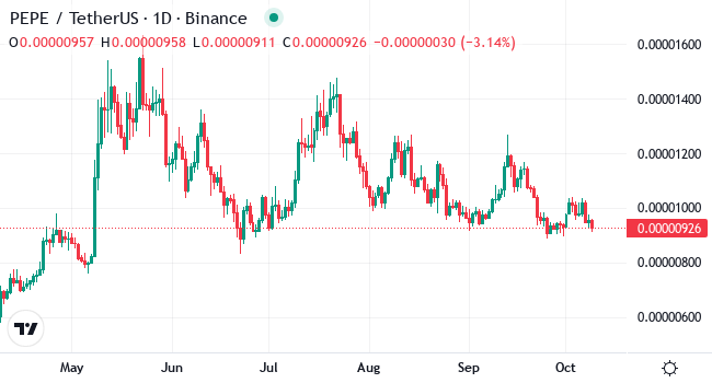 Dogecoin (DOGE) and Shiba Inu (SHIB) are cooling off in the market. However, PEPE is still showing some activity. While DOGE and SHIB seem to be losing traction, PEPE’s performance remains notable. The trend suggests PEPE might currently be the most lively among these meme coins. This sets it apart from DOGE and SHIB, which are experiencing a downturn.