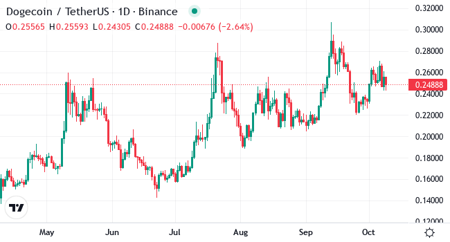 Currently, Dogecoin is moving between twenty-three and twenty-seven cents. It's facing a resistance at twenty-nine cents and has support around twenty-one cents. Over the last month, the price increased by almost three percent, showing some upward momentum. In the past six months, it has surged by nearly fifty-six percent, signaling significant growth. The next resistance level is around thirty-three cents. If the price breaks through, Dogecoin could see a strong rise. With these levels in mind, Dogecoin's movement suggests a mixed but potentially promising path. The coin’s recent stable climb might attract more interest, growing it even more if it rallies past current barriers.
