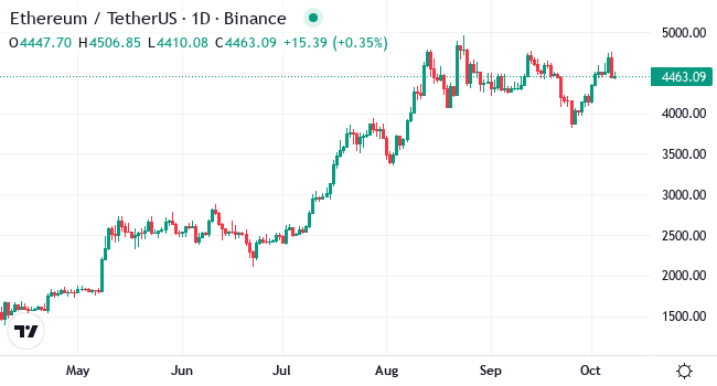 Ethereum is riding a wave with its price sitting in an impressive range between $4,198 and $4,725. The cryptocurrency recently enjoyed a week-long boost of over 7%, and its six-month growth stands at a staggering 192%. If Ethereum can overcome its closest resistance at just under $5,000, it could aim for a higher target above $5,463. Its relative strength index suggests it still has room to grow before hitting overbought levels. The current market sentiment reveals potential for Ethereum to push beyond its boundaries, setting the stage for exciting developments ahead. With these encouraging trends, Ethereum could soon be in uncharted territories, capturing the attention of investors worldwide.
