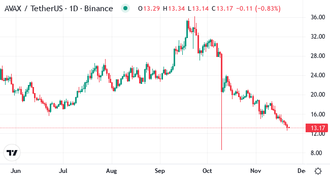 Avalanche (AVAX) is trading within a price range between the mid-teens. Its nearest support is just over twelve dollars, while resistance sits at twenty. Recently, AVAX has faced a drop of over thirty percent in the last month alone. Despite these struggles, the coin shows signs of potential growth. If it surpasses its nearest resistance, it could aim for twenty-four dollars, marking a possible increase of over forty percent from current levels. With its RSI still low, there's room for a bounce back if buying momentum picks up. Current indicators suggest it could break out if the market sentiment turns positive.