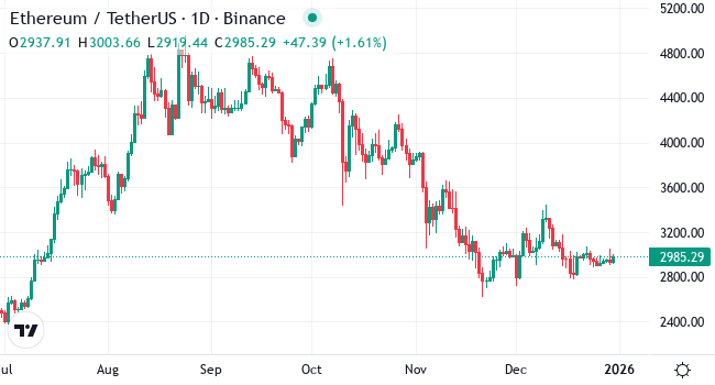Ethereum's price is bouncing between just above $2800 and over $3000. The coin is approaching a resistance point at $3150, suggesting a rise could be on the cards. If it breaks through this, it might aim for a higher goal at over $3300. Ethereum's price has dipped slightly in the past week, edging down by less than 1%, and staying mostly unchanged over the past month. However, over the last half-year, Ethereum has surged over 16%, signaling potential for further growth. The current stats hint at positive momentum, with traders eyeing those higher marks if the uptrend continues.