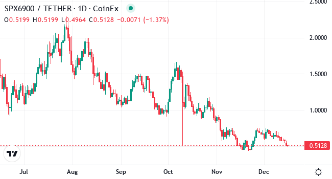 The cryptocurrency SPX6900 (SPX) is in a price range between just under half a dollar to less than three-quarters of a dollar. Currently, it's experiencing some downward pressure but could potentially rise to its nearest resistance at around seventy-seven cents, a possible climb of over forty percent. Its journey to ninety-four cents is also on the horizon, marking a growth of over forty percent again from the nearest resistance. The recent month has seen stable prices, though the past half-year has been tough with the value dropping notably. With its RSI showing it's nearly oversold, and a sluggish MACD level, a potential rebound might be on the cards soon.