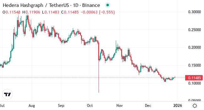 Hedera (HBAR) is currently trading between the low 10 cents and nearly 12 cents. It's trying to break past a resistance point at about 12.3 cents. If it manages this, the next target is around 13.2 cents. The coin’s recent movement shows a small weekly bump of about 1.7%, though it's still down by over 21% this month. If HBAR gains momentum, passing both resistance levels could mean a rise of more than 20% from its current price. However, the RSI suggests the market isn’t overbought yet, giving potential for growth. Keep an eye on moving averages; they hint at steady momentum, crucial for breaking resistance.