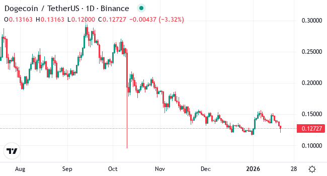 Dogecoin is currently priced between thirteen and fifteen cents. It hovers near a support level of twelve cents, with a key resistance at sixteen cents. The market indicators show mixed signals, suggesting potential volatility. The ten-day moving average is slightly lower than the current range, pointing to potential price corrections. However, if DOGE breaks past the nearest resistance, it could rise to eighteen cents, marking a potential increase of about twenty to thirty percent from its low point. The recent drop of over fifty percent in the last six months suggests there's room for a rebound if market conditions improve. Keep an eye on the trends, as they hint at possible growth or further dips.