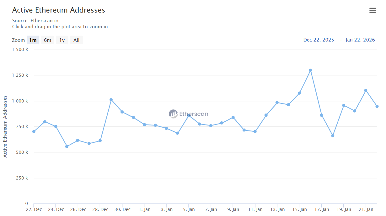 Ethereum’s mainnet has registered a surprising and significant spike in activity, with daily active addresses climbing to levels not seen in years. According to Etherscan data, Ethereum L1 approached 1.3 million active addresses on January 16, briefly surpassing some of its own Layer 2 networks in terms of raw usage.