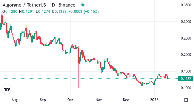 Algorand (ALGO) is currently trading between 13 and 14 cents, showing a slight dip over the past week but a notable gain in the past month. The nearest resistance level is set at 15 cents, while support is nearby at 12 cents. This suggests a potentially cautious upward trend if the resistance is broken. Algorand has gained over 10% this month, indicating a glimmer of recovery. However, over the past six months, it remains down by more than half of its value. If the coin successfully breaks through the second resistance at 17 cents, it could see a growth of around 30% from its current levels.