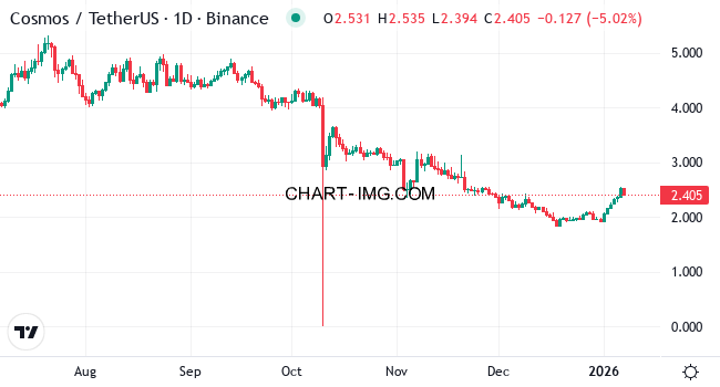 Cosmos (ATOM) is trading between $2.05 and $2.49, showing a positive shift with a 22% increase over the past week. This jump suggests a potential rally towards its nearest barrier at around $2.64. Breaking this threshold could open a path to the next zone near $3.08, marking about a 23% climb from its current range. Although ATOM has seen a decline of nearly 48% over the last six months, the recent movement indicates a possible trend reversal. With support pegged at $1.75 and RSI under 50, there's room for upward motion if buying interest remains strong. If the momentum holds, Cosmos could see progressive recovery in the short term.