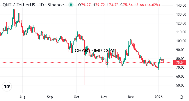 Quant (QNT) is currently priced between about $69 and $84. It has shown a small climb of over 7% in the past week but faced a larger drop of more than 13% over the last month. The price is well below its 10-day and 100-day simple moving averages. The next key resistance level is near $91, and support is around $61. The coin could potentially rise by about 30% to reach its second resistance at $105 if momentum builds. However, the relative strength index shows it may be oversold, suggesting potential for some recovery in the near term.