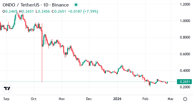 Ondo (ONDO) is exploring prices between a quarter and slightly more, meeting resistance just under thirty cents. The coin has dipped nearly eighteen percent in the last month but is holding steady around its simple moving average. With its RSI and Stochastic showing high numbers, Ondo may be overbought, suggesting a need for caution. If it breaks past the first resistance, Ondo could aim for an increase of roughly fourteen percent, but risks need to be considered near the support levels. Overall, while Ondo has faced significant drops over six months, it still has potential to recover if it can maintain momentum, possibly bouncing higher soon.