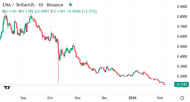 Ethena (ENA) is bouncing within a price range of $0.11 to $0.17 after taking a downward turn. Despite losses of almost 25% in the past week and over 50% in the past month, it's positioned close to its 10-day average. For a potential rebound, the key hurdle is at $0.20. If it breaks past this, the next target is $0.25, which would mean a significant gain of over 45% from its lower current range. However, it's not far from the support at $0.09, but this leaves room for hopeful investors looking for quick rises. The overall outlook is a mix of caution and potential for gains if it manages to rise above recent lows.