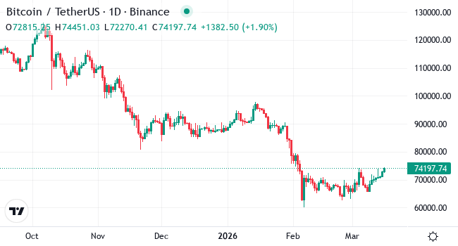Bitcoin is trading between $67,000 and over $75,000. It's close to its resistance level. If it breaks $78,879, a rise to $86,923 may happen. That’s about a 14% jump from its current high range. Recently, Bitcoin has grown over 12% this week and about 8% this month. Short-term trends are encouraging, with a 10-day average around $73,687, above the 100-day mark of $71,503. However, it's still trying to overcome a six-month drop of nearly 37%. Bitcoin's RSI is at 66, hinting at more buying interest. If Bitcoin grips these positives, it might climb further, but it needs to secure its position above the current resistance levels first.