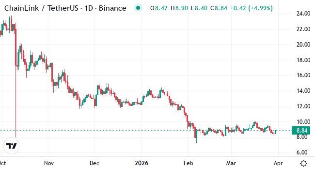 Chainlink's price is rising, currently between eight and nine dollars. It faces resistance near ten dollars and support just above seven dollars. The recent movement shows a weekly gain of over one percent and similar monthly growth. However, a longer six-month view reveals a steep drop of nearly sixty percent. The short-term moving average signals possible continued growth, as it surpasses the longer-term average. Indicators like the RSI and Stochastic hint at overbought conditions but also potential for further climbs. If LINK breaches its nearest resistance, it may aim for around eleven dollars, marking an increase of about twenty percent from its current price range.