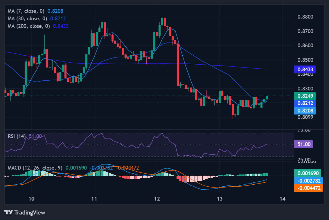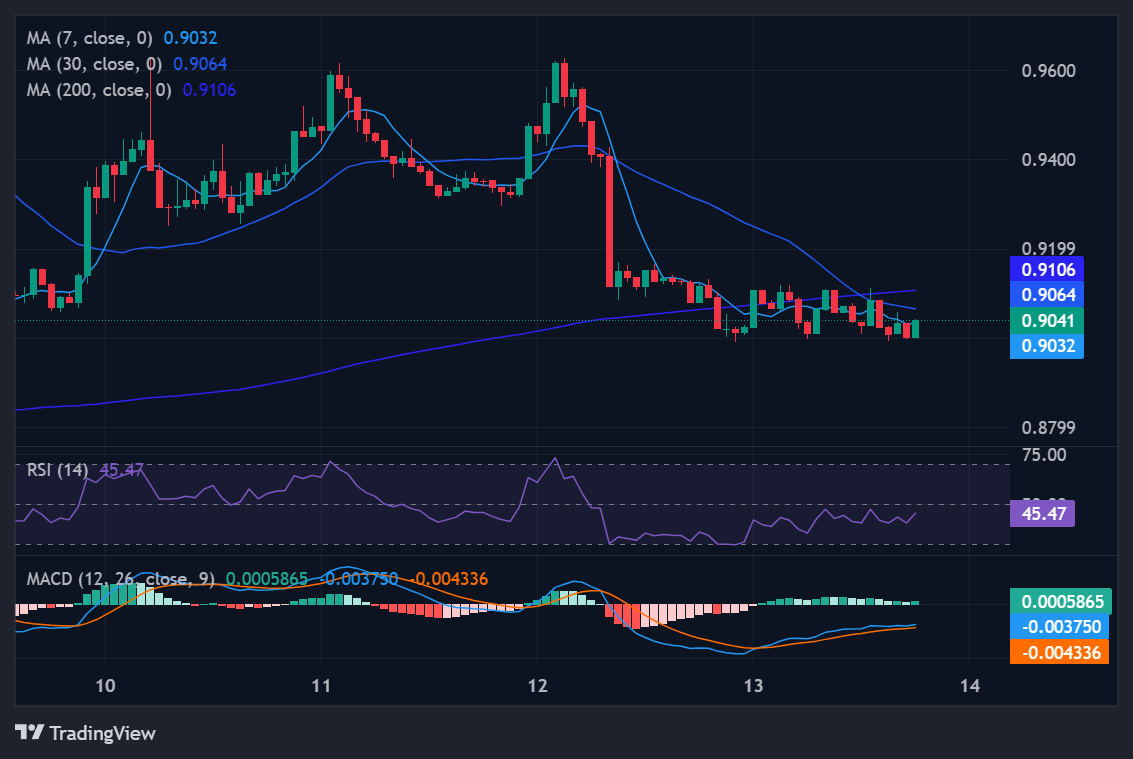 Bullish Scenario: A catch-up leg targeting $1.22–$1.45 (+35% to +60%). This would push price toward the 200-day MA ($1.63) and would be confirmed by a sustained break of the 30-day MA on expanding volume.