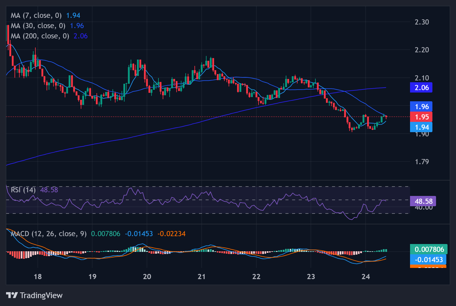 Arweave is increasingly viewed as the "Permanent Hard Drive" for AI. Its focus on immutable storage for massive datasets and model weights has given it a mild bullish tilt. Technically, AR is showing signs of life, trading above its 30-day SMA ($1.81), though it has recently dipped just below its 7-day average.