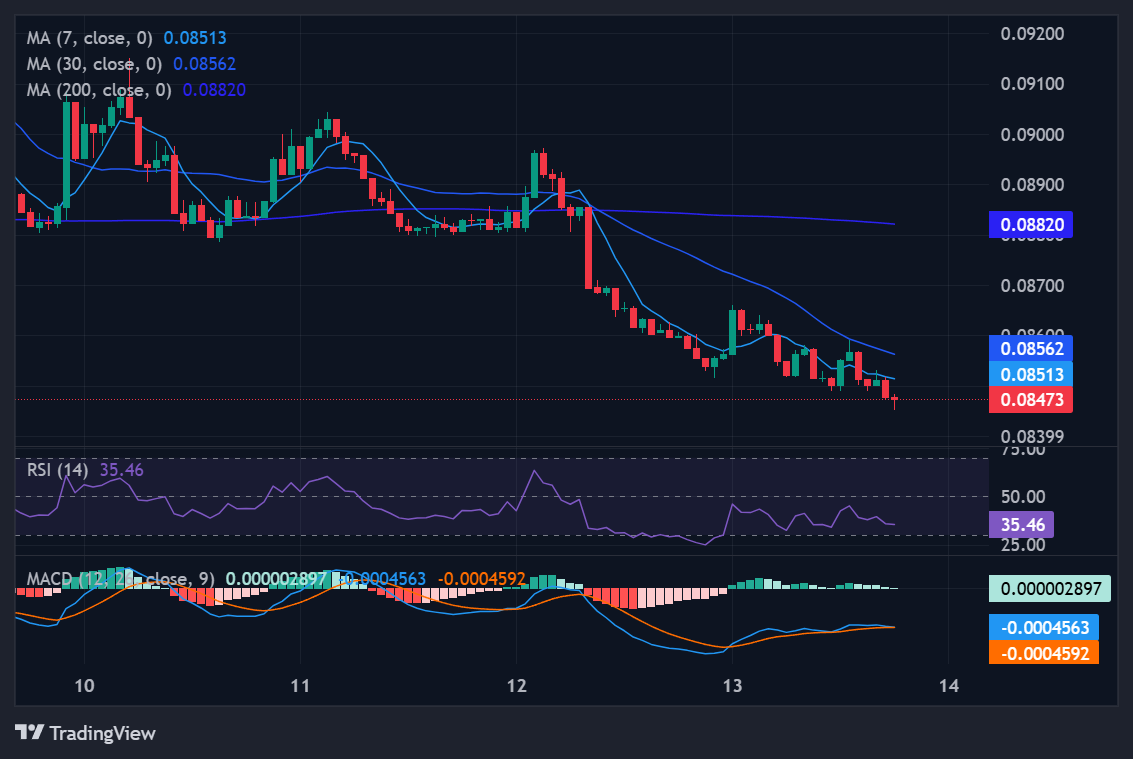 Hedera (HBAR) continues to position itself as the "steady hand" of enterprise infrastructure. Technically, HBAR is exhibiting classic "tired downtrend" behavior. While the price remains below its 7-day ($0.0887) and 30-day ($0.0909) moving averages, the MACD histogram has begun to turn slightly positive (+0.00011). This suggests the downward momentum is flattening into a base, though a clean breakout has yet to materialize.