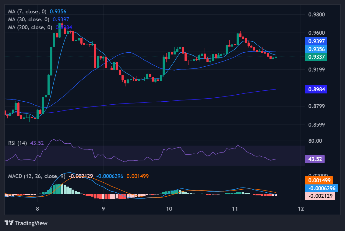Sui (SUI) is often categorized alongside "fast DeFi" and next-gen app chains. Its technical structure mirrors Injective’s: price is sitting just above the 7-day ($0.90) and 30-day ($0.93) moving averages, while the 200-day SMA ($1.65) remains far out of reach. While its monthly performance is slightly softer than INJ's (-4.5%), its short-term technicals are comparable, showing mildly bullish momentum without being overbought.