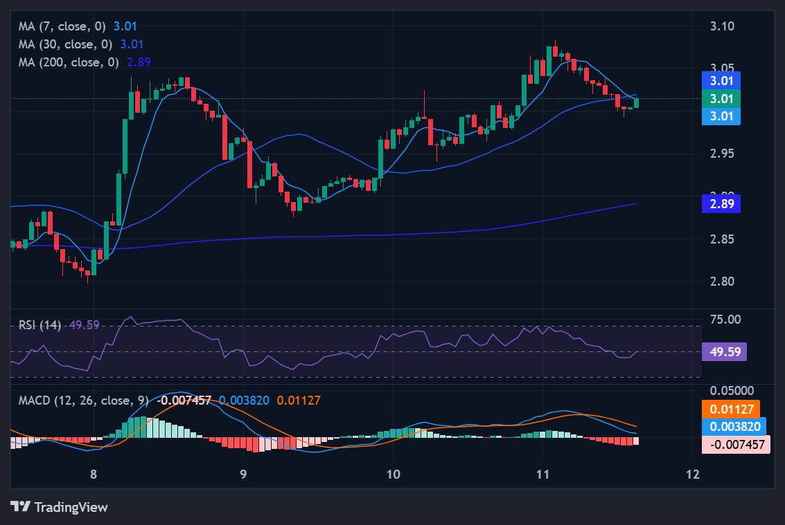 Injective (INJ) is purpose-built for the next generation of on-chain derivatives and order-book style trading. Technically, INJ has reclaimed its short-term 7-day ($2.92) and 30-day ($2.98) moving averages, signaling an early recovery. However, the 200-day SMA ($5.59) remains a heavy overhead resistance level. With an RSI-14 at 54.96, momentum is turning up from a negative profile but has not yet matured into a full-scale trend.