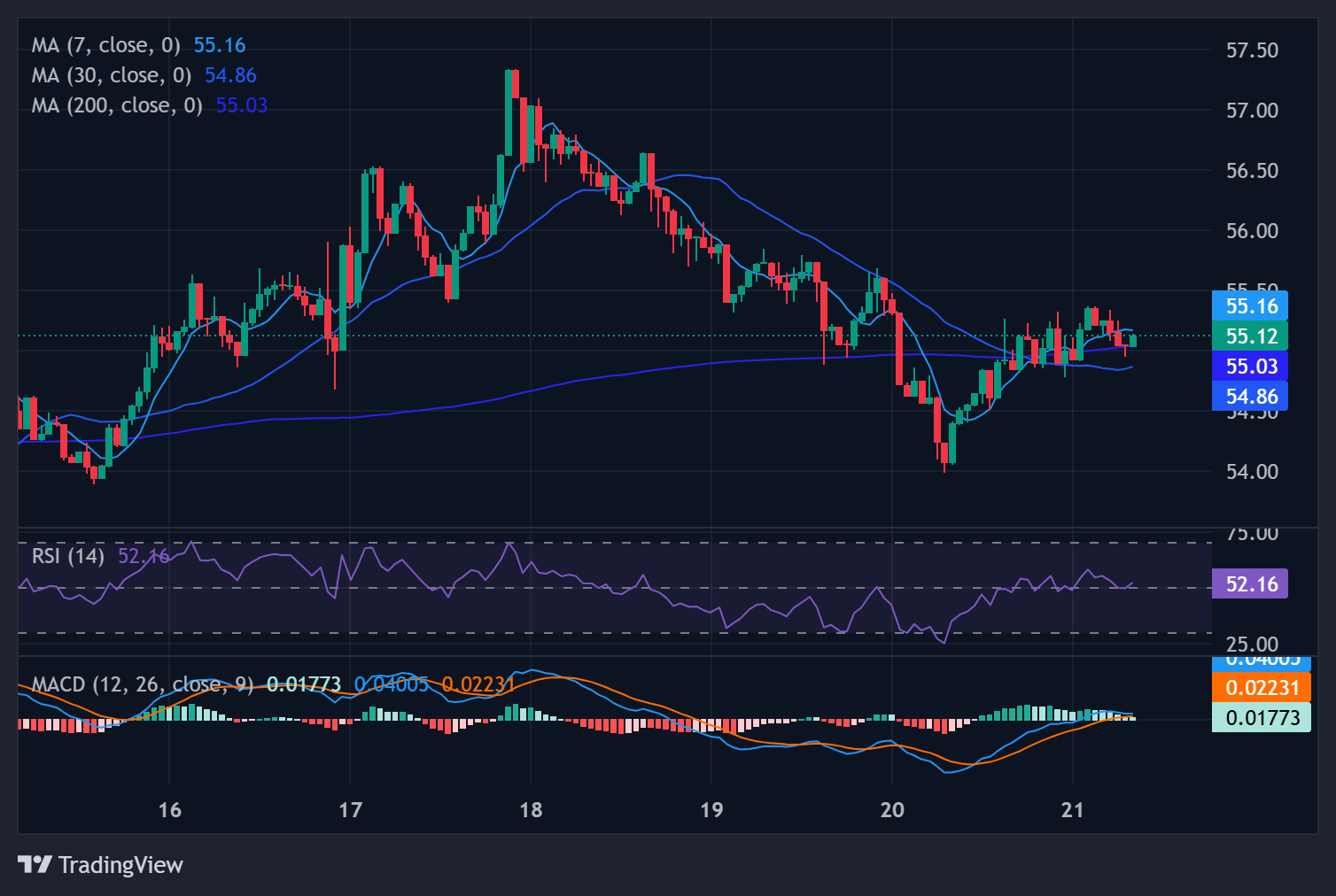 Technical Verdict: LTC is currently in a "sideways tilt" phase. At $55.07, it is essentially hugging its short-term averages. While the MACD has turned positive, indicating a recovery from earlier weakness, the RSI-14 at 51 shows a lack of aggressive buying pressure. It is behaving like a mature asset that tracks Bitcoin's health rather than a speculative front-runner.
