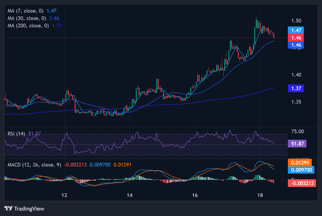 XRP is currently the clear leader in the payments category, buoyed by the XRPL 2026 Overhaul which introduced native ZK-privacy for institutional transactions. The surge to $1.47 has successfully pushed the price above both its 7-day ($1.39) and 30-day ($1.37) averages. With address counts hitting a record 8.2 million this quarter, the on-chain activity is finally matching the institutional hype.