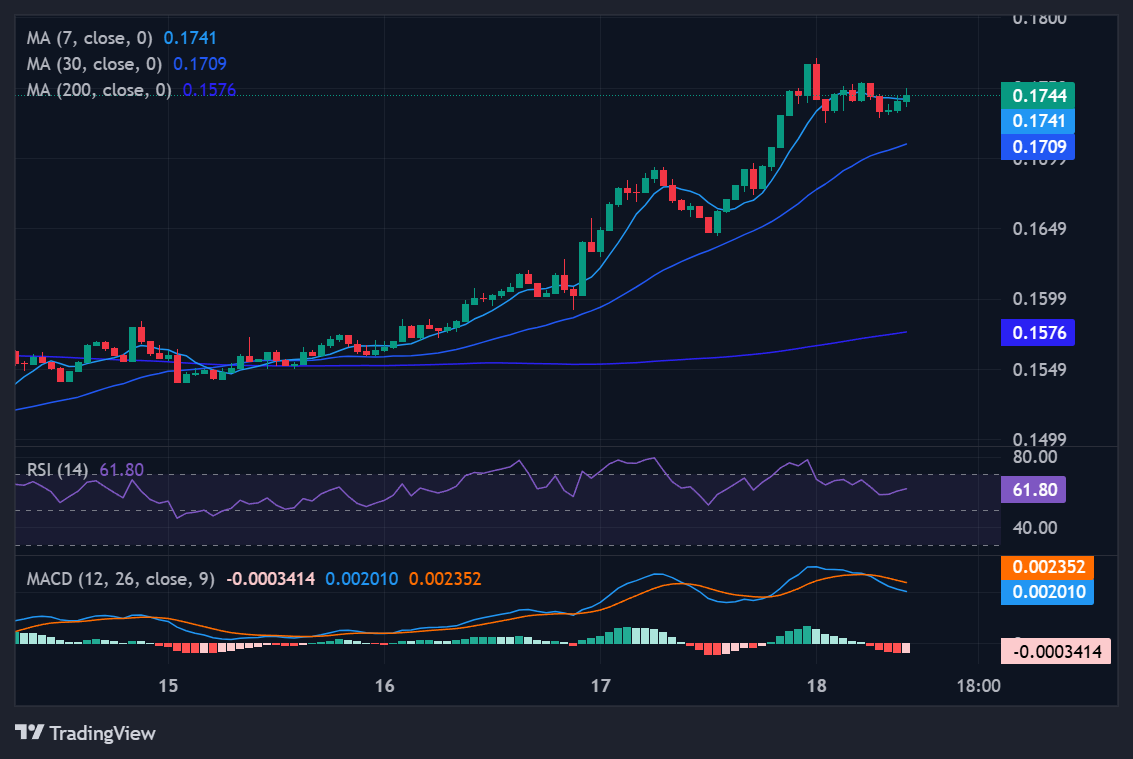 Technically, XLM is slightly "lagging" behind XRP’s momentum. While price ($0.1736) is above the short-term averages, the MACD line is only just beginning to flatten toward positive territory.
